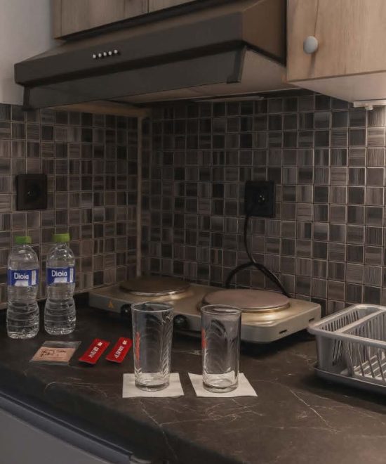 Студиото содржи два кревети од кои едниот е 140цм.широк а другиот 120цм.реновирана кујна со фрижидер и потребен прибор за готвење и јадење,реновирана бања со фен за коса и памучни крпи,балкон,тенда на балконот за заштита од сонце,плафонски вентилатор кој ги задоволува потребите за разладување,клима инвертер уред и wi-fi.