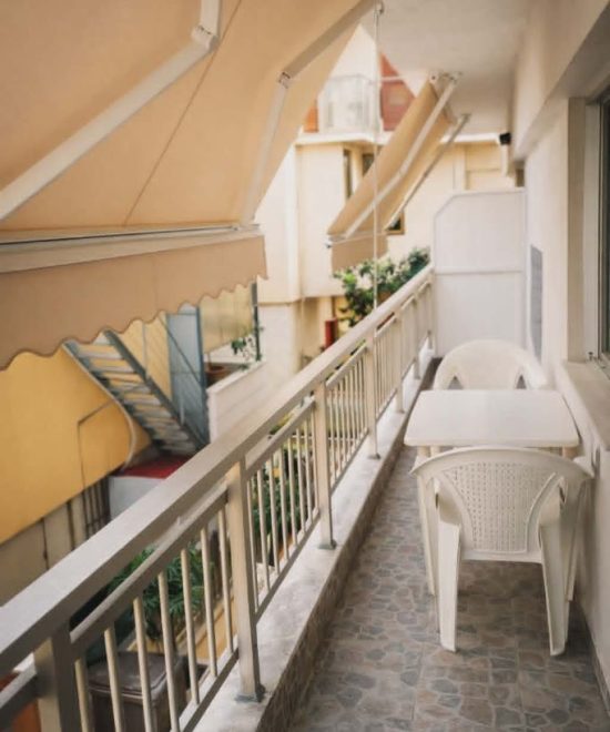Студиото содржи два кревети од кои едниот е 140цм.широк а другиот 120цм.реновирана кујна со фрижидер и потребен прибор за готвење и јадење,реновирана бања со фен за коса и памучни крпи,балкон,тенда на балконот за заштита од сонце,плафонски вентилатор кој ги задоволува потребите за разладување,клима инвертер уред и wi-fi.